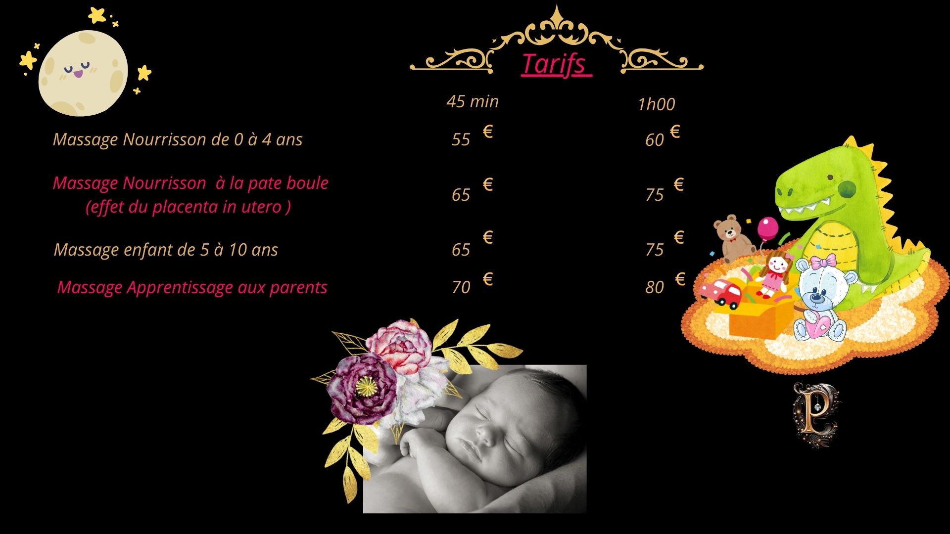 Massage Nourrisson: Liens affectifs et bien être du nourrisson. Aide à la prise des repères dans le temps et l'espace . Accompagnement et aide pour le sommeil , accompagnement des prises de fonction de parent.